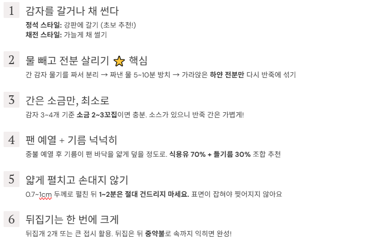 하지만 포인트만 잡으면 감자전은 의외로 단순합니다.