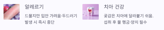 이런 증상이 있다면 섭취를 중단하고 확인이 필요합니다.