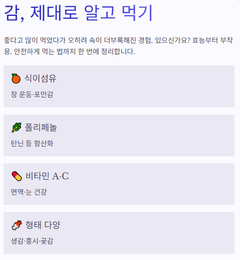 특히 간식이 잦은 분들은 감을 “달달한 디저트 대체”로 활용하면 과자 섭취를 줄이는 데도 도움이 됩니다.