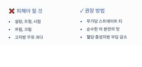 → 혈당·중성지방에 부담 - 프림, 크림, 고지방 우유를 과하게 넣으면