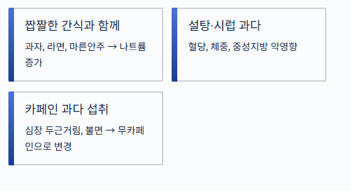 → 즉시 양을 줄이고, 무카페인 차 위주로 변경 필요