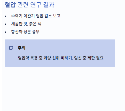 이미 혈압약을 복용 중인 분은 과량 섭취를 피하고, 의사와 상의 후 드시는 것이 좋습니다. - 임신 중, 특정 약을 복용 중일 때는 섭취를 제한해야 할 수 있습니다.