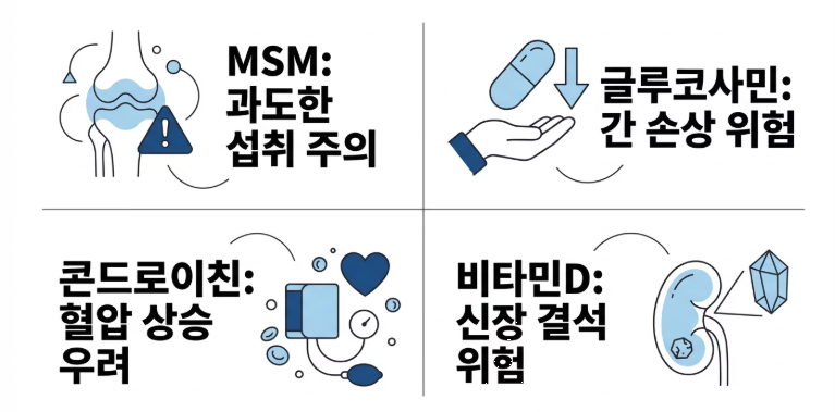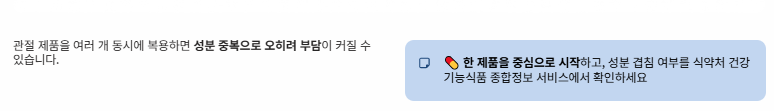 3) 여러 관절 영양제를 중복 섭취하지 않는 것이 좋습니다