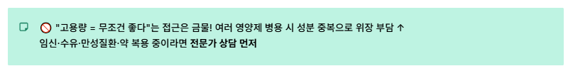 ※ “고용량일수록 무조건 좋다”는 접근은 피하세요. 특히 여러 영양제를 함께 먹는 분이라면 성분이 겹쳐 위장 부담이 커질 수 있습니다.