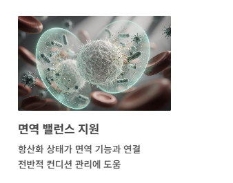 항산화 상태가 면역 기능과도 연결될 수 있어, 전반적인 컨디션 관리 관점에서 언급됩니다.