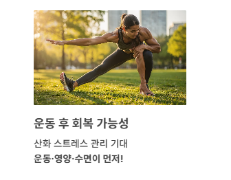 일부는 운동 후 산화 스트레스 관리 측면에서 기대하지만, 목적이 뚜렷하다면 운동·영양·수면이 먼저라는 점을 잊지 마세요.