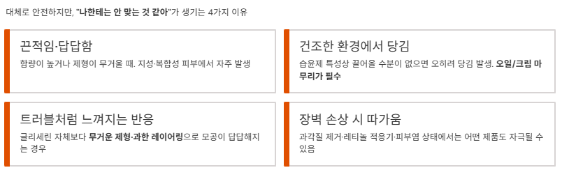 글리세린은 대체로 안전하지만, “나한테는 안 맞는 것 같아”가 생길 수 있어요. 대표적인 포인트는 아래 4가지입니다.