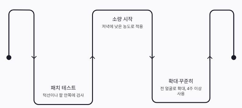 새 제품은 턱선이나 팔 안쪽에 먼저 테스트해 보고, 자극이 없다면 얼굴 전체로 넓혀가는 방식이 안전합니다.