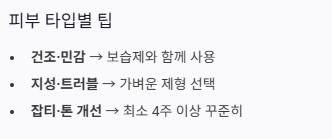 결국 좋은 성분도 많이 바르는 것보다 내 피부에 맞게 꾸준히 쓰는 것이 더 중요합니다.