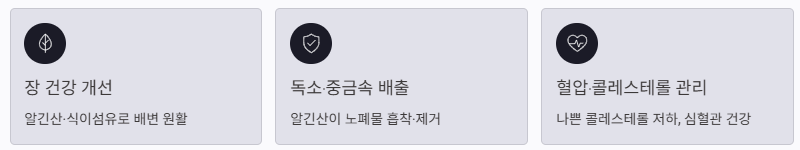 특히 알긴산은 다시마의 핵심 성분으로 체내 노폐물 배출에 중요한 역할을 합니다.