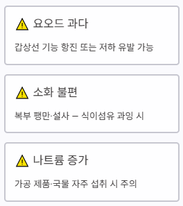 하지만 과다 섭취 시 갑상선 이상이나 소화 불편을 유발할 수 있으므로 적정량 섭취가 중요합니다.