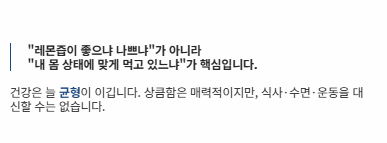 상큼함은 분명 매력적이지만, 건강은 늘 균형이 이깁니다.