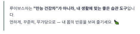 커피·에너지음료를 줄이고 싶거나, 저녁에 마실 음료가 필요한 사람에게 루이보스는 좋은 대안이에요.
