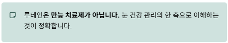 즉, 루테인은 만능 치료제가 아니라 눈 건강 관리의 한 축으로 보는 것이 적절합니다.
