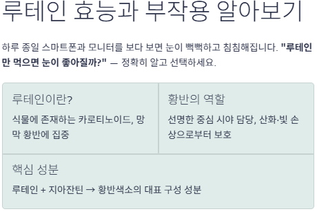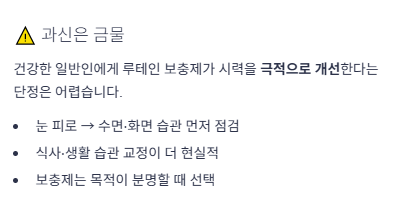 결론적으로 루테인은 “눈 건강을 위한 좋은 도구”일 수는 있어도, “무조건 먹어야 하는 정답”은 아닙니다.