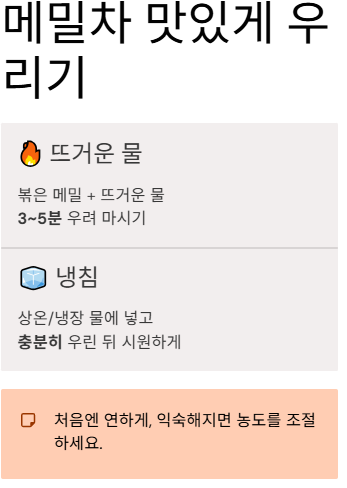 - 뜨거운 물: 볶은 메밀을 넣고 3~5분 우려 마시기