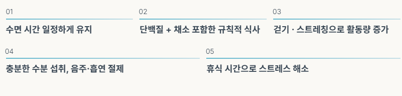 반대로 수면 부족, 스트레스, 불규칙한 식사, 과로, 운동 부족이 이어지면 컨디션이 쉽게 무너질 수 있습니다.