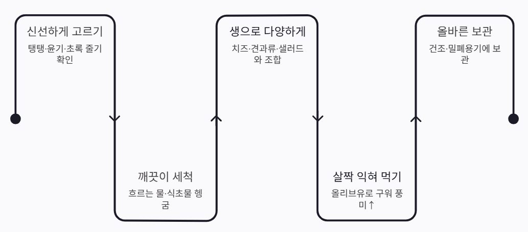 손질이 비교적 간단하고 조리 없이 바로 먹을 수 있어 바쁜 일상에 잘 맞습니다.