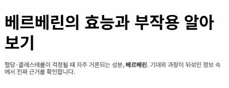 따라서 베르베린은 “치료제 대체품”이 아니라 “신중하게 검토할 보조 선택지”로 보는 것이 더 현실적입니다.