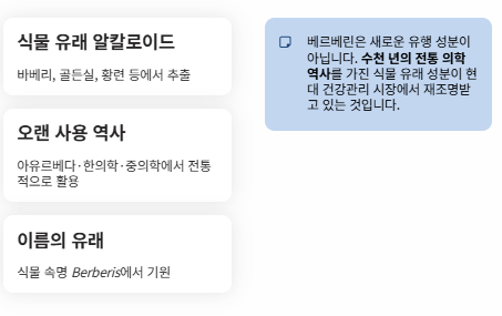 즉, 베르베린은 완전히 새로운 유행 성분이라기보다 오래된 식물 유래 성분이 현대 건강관리 시장에서 다시 주목받고 있는 경우에 가깝습니다.
