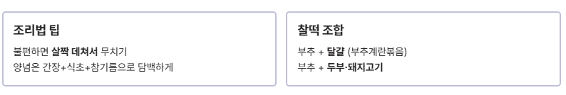 - 기름이 부담 → 부추전 대신 국/볶음으로