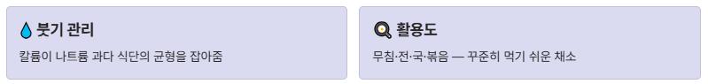 - 생으로 먹을 때 불편 → 살짝 데쳐서 무치기