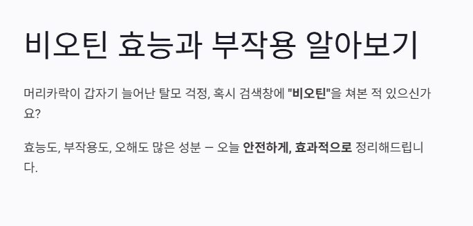 그런데 비오틴은 “머리 영양제”로만 단순하게 보기엔 효능도, 부작용도, 오해도 꽤 많은 성분입니다.