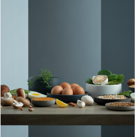 - 달걀(※ 흰자 생식은 오히려 비오틴 흡수에 방해가 될 수 있어 ‘익혀서’ 권장), 견과류, 콩류, 버섯, 통곡물