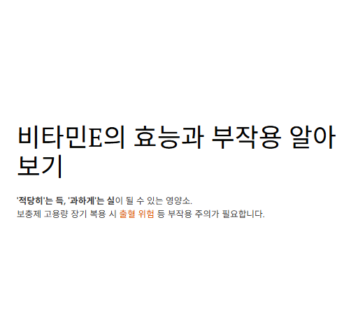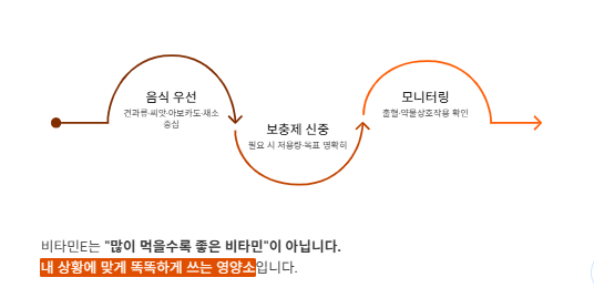 또한 심혈관질환·암 예방 목적으로 비타민E 보충제를 복용하는 것은 권장되지 않는다는 권고도 있습니다.