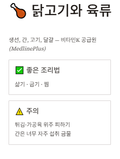 특히 닭고기, 간, 지방이 있는 고기류에서