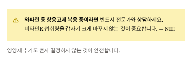 비타민K 섭취를 갑자기 바꾸지 말아야 합니다.