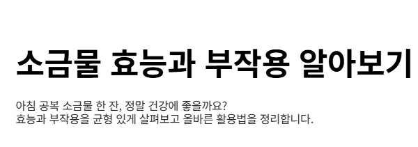 오늘은 소금물의 효능과 부작용을 균형 있게 살펴보고, 올바른 활용법까지 단계별로 정리해 드리겠습니다.