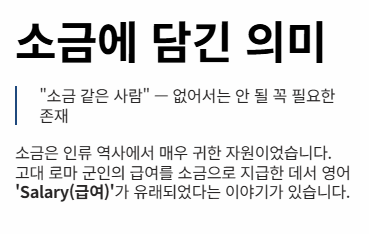 실제로 소금은 인류 역사에서 매우 중요한 자원이었으며, 고대 로마에서는 군인의 급여를 소금으로 지급하기도 했습니다.