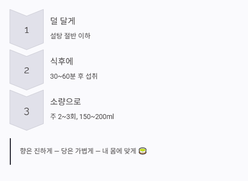 - 따뜻함/소화 도움 목적: 설탕은 최소, 따뜻하게 소량