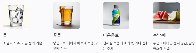 수분 섭취와 영양 보충, 휴식이 함께 가야 몸이 회복됩니다.