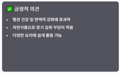- 혈관 건강 및 면역력 강화에 도움