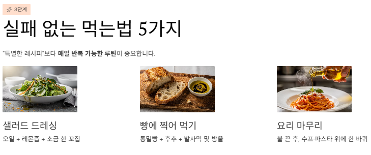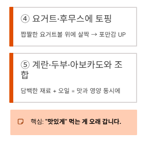 - 샐러드/빵/요리 마무리처럼 매일 가능한 루틴이 정답