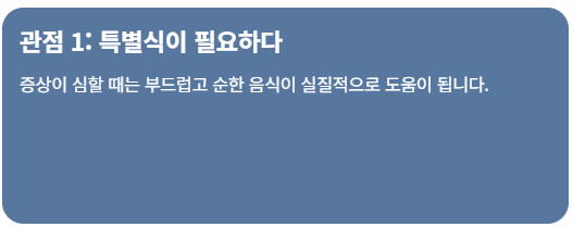 실제로 증상이 심할 때는 부드럽고 순한 음식이 도움이 됩니다.