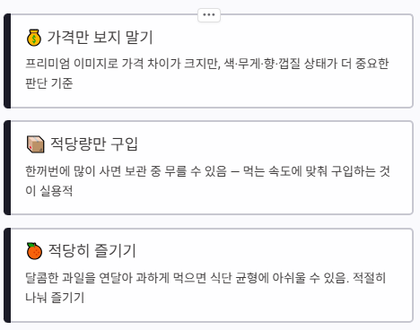 그래서 단순히 단맛만 강한 과일이 아니라, 향과 식감까지 함께 즐기는 과일로 인기가 높습니다.