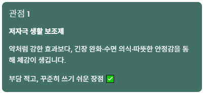 관점 1) 생활 루틴에 도움이 되는 ‘저자극 보조제’
