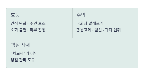 결국 카모마일은 “치료제”보다는 내 컨디션을 안정시키는 생활 관리 도구에 가깝습니다.
