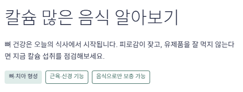 칼슘은 뼈와 치아 건강은 물론 몸의 기본 기능 유지에도 중요한 영양소입니다.