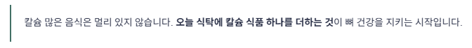 오늘 식탁에 칼슘 식품 하나를 더하는 작은 변화가, 앞으로의 뼈 건강을 지키는 시작이 될 수 있습니다.