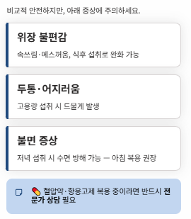 - 위장 불편감 (속쓰림, 메스꺼움)