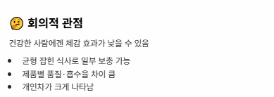 일부 전문가들은 일반적인 식사를 통해 충분히 섭취 가능하며, 건강한 사람에게는 큰 효과를 체감하기 어렵다고 말합니다.
