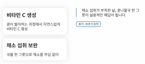 물론 콩 자체만큼 고단백 식품으로 보기는 어렵지만, 반찬이나 국 한 가지로 식단의 균형을 맞추는 데는 충분히 유용합니다.