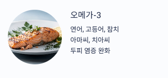 - 연어, 고등어, 참치(섭취 빈도 조절), 아마씨/치아씨