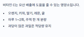 비타민 C는 요산 배출에 도움을 줄 수 있는 영양소로 자주 언급됩니다.