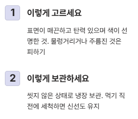 물러 있거나 주름이 심한 것은 신선도가 떨어질 수 있습니다.