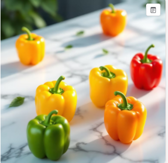 - 초록 파프리카 : 덜 익은 상태로 쌉싸름한 맛이 있고 상대적으로 열량이 더 낮게 느껴질 수 있습니다.